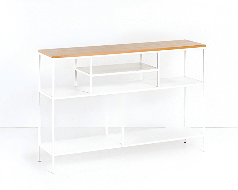 - Uniwersalność Stylu: Biały kolor ramy sprawia, że regał pasuje zarówno do surowych loftów, jak i do jasnych wnętrz w stylu skandynawskim czy hamptons.