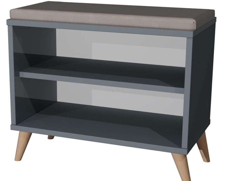 - Komfortowe Siedzisko: Tapicerowana góra w kolorze jasnego brązu (beżu) tworzy ciepły kontrast z antracytem i oferuje wygodne miejsce do zmiany obuwia.